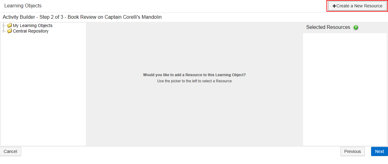 You can also double-click a Resource from the Learning Object Repository to add it to the 'Selected Resources' column (PC and MAC only).