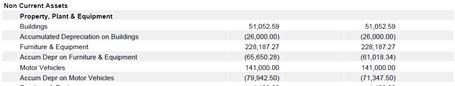 Separate by Reporting Code 2 | This option will allow you to break your assets and liabilities into groups such as 'Current' and 'Non-current'. An example of the Assets section of a balance sheet is directly below. The layout is comprised of 3 headings: