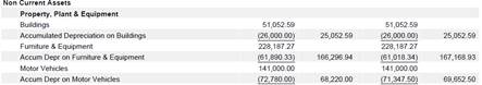 A format where the 'Offset Associated Accounts' option is ticked to display totals for Assets less their Accumulated Depreciation.
