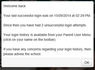 If there have been any unsuccessful logins since their last successful login, the parent will receive a message: