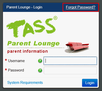The reset password facility will provide parents with a 'Forgot Password?' link on the Parent Lounge login screen.