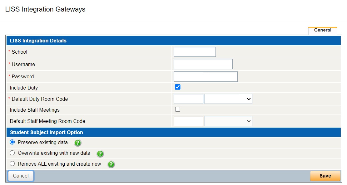 LISS Integration Gateway - Student Subject Import Options
