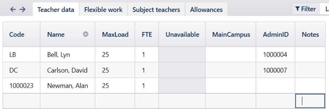 9 | TASS.web Student Admin > Teacher Records > Teacher Information > Teachers. Enter/Check/Add Teacher data. Teachers must have the 'Employment Status' of 'Current' and have an Employee Code. | Teacher data can be downloaded from TASS into TES Timetable. The following information will be downloaded: Teacher Code, Gender, Email, Phone number, Employee Code (Admin ID). Teachers must have the 'Employment Status' of 'Current' in TASS. The Employee Code can be entered into the 'Code' field or the 'Admin ID' field in TES Timetable. ![]() | 🔲 |