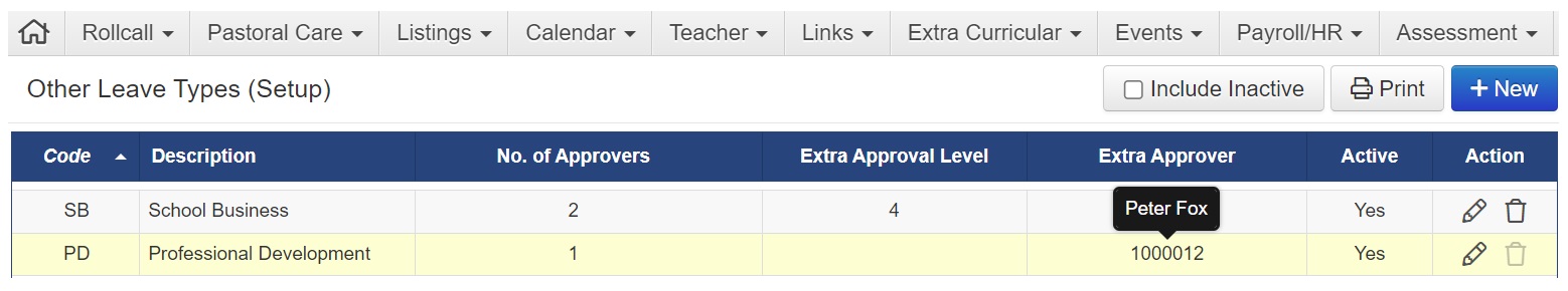 An optional final 'Designated' approver - a specific person - can be allocated to approve each leave type, regardless of their level in the Supervisor Hierarchy.