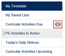 In the example below, there are 2 curricular activities that this teacher is responsible for, that are due today.