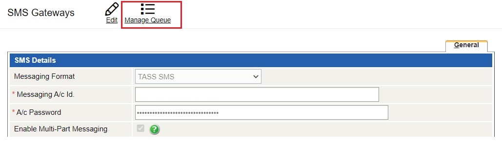 SMS Queue Maintenance | Users are now able to manage their SMS queues directly in TASS.web. The new 'Manage Queue' link opens the 'SMS Queue Maintenance' screen, which will display a list of any unsent messages. The are a range of filter options, and the user is able to cancel all, or selected, queued messages. A new edit security permission 'SMS Queue Maintenance' has been added to assign to the relevant users. |