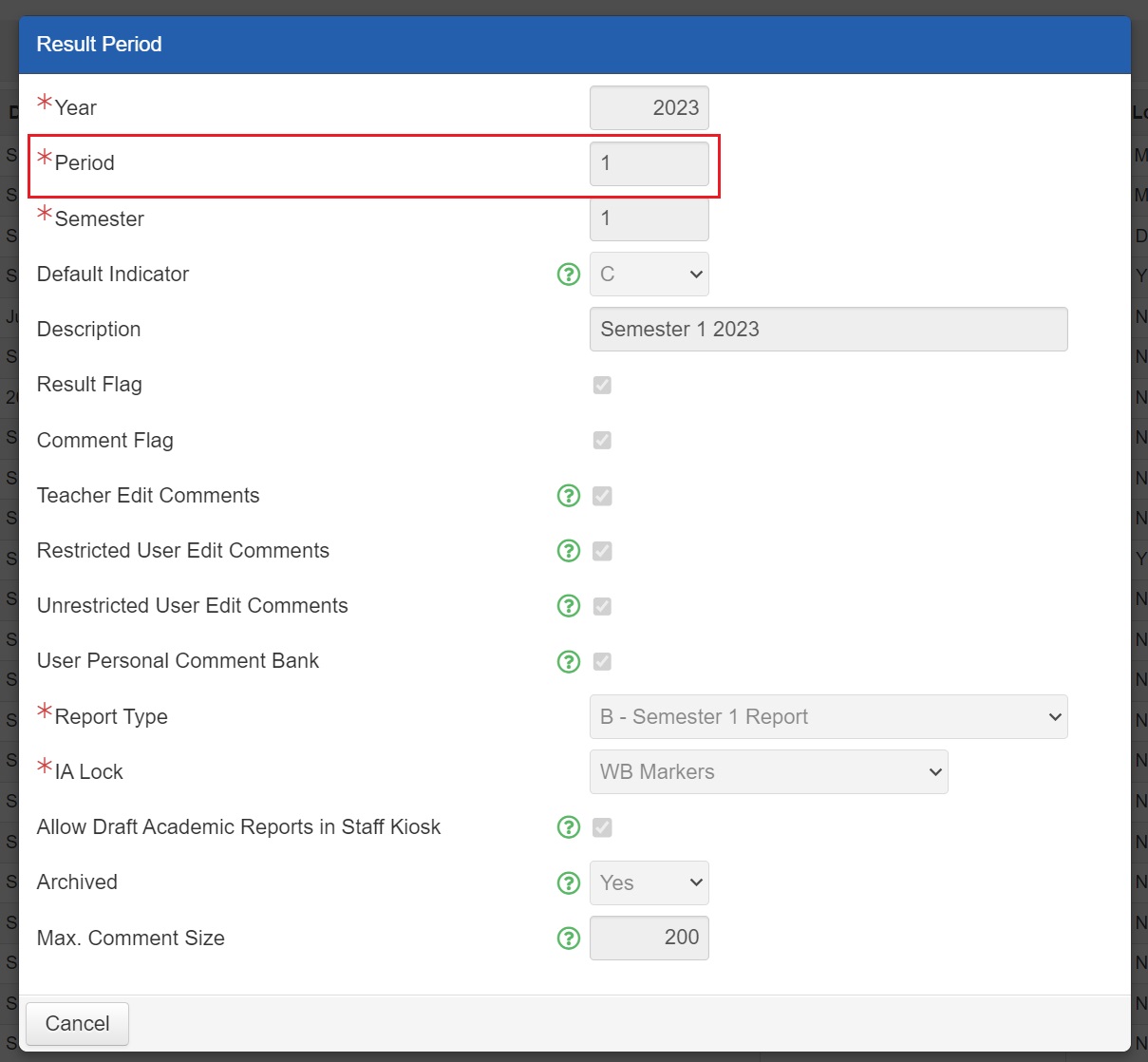 Each 'Result Period' needs a unique numeric identifier. This is entered into the 'Period' field.